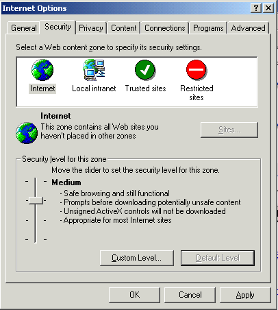 5. Set the security level to Medium or lower.